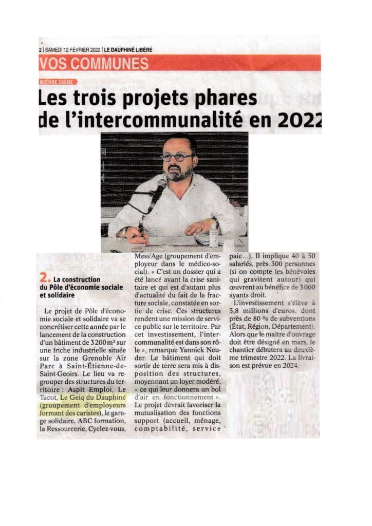 Le projet de Pôle d’économie sociale et solidaire va se concrétiser cette année par le lancement de la construction d’un bâtiment de 3 200 m2 sur une friche industrielle située sur la zone Grenoble Air Parc à Saint-Étienne-de-Saint-Geoirs. Le Geiq du Dauphiné et le garage solidaire prendront très prochainement place dans leurs nouveaux locaux. Ces […]